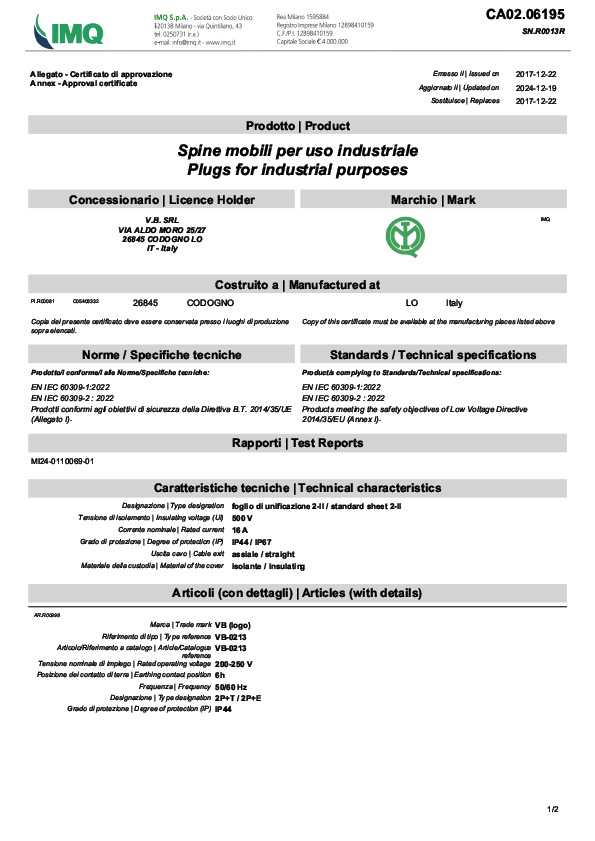 Le nostre spine e prese industriali sono realizzate seguendo i più elevati standard di qualità, grazie alla certificazione IMQ che attesta l’adozione di un sistema di gestione della qualità rigoroso e costantemente aggiornato.