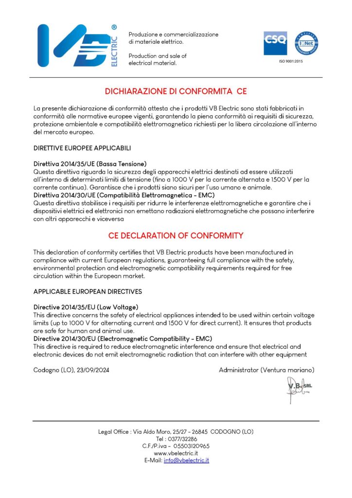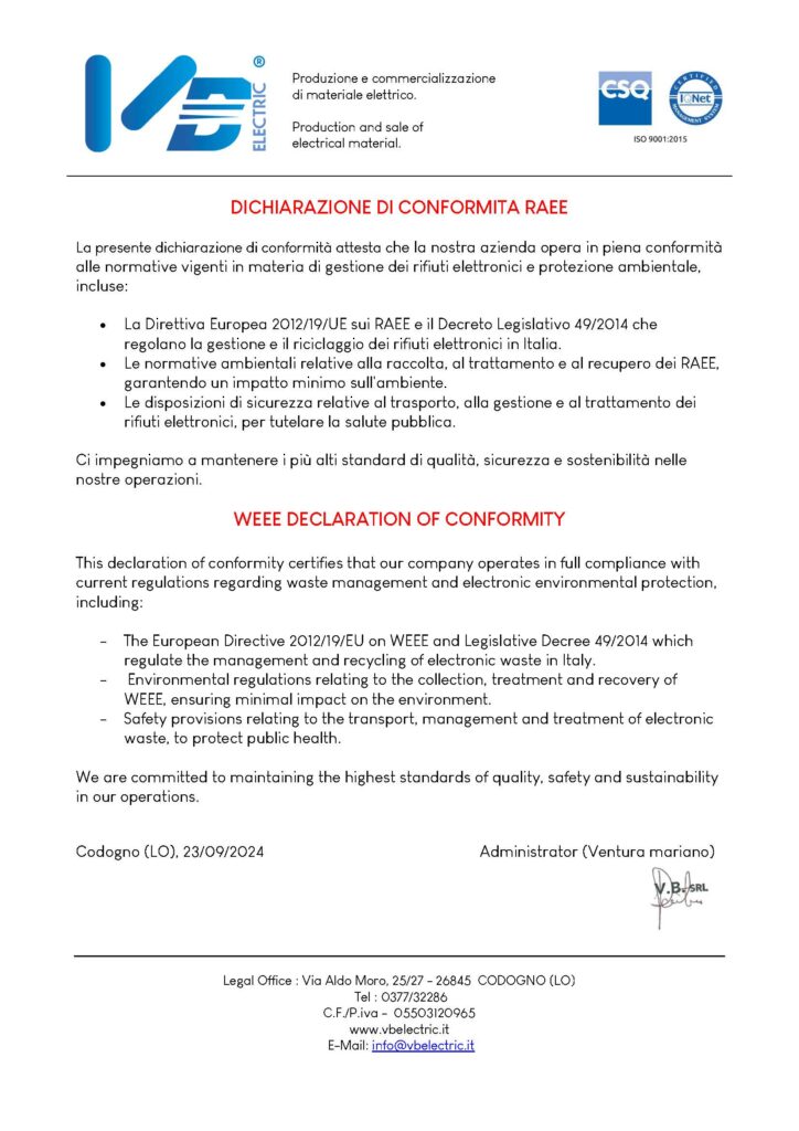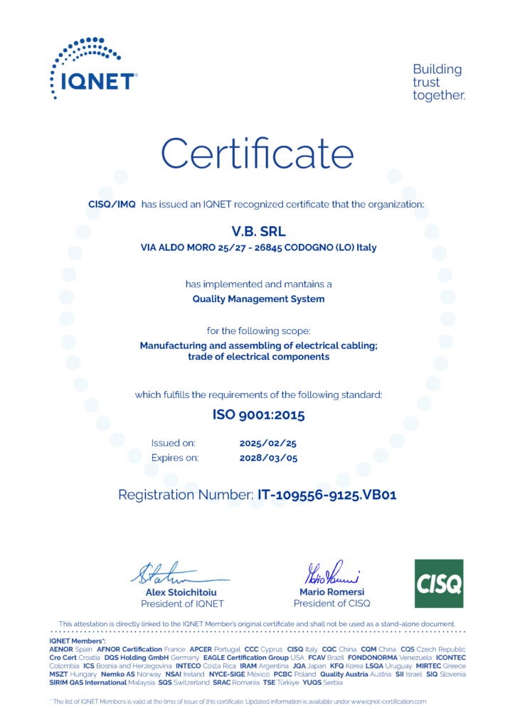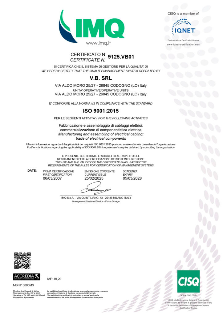 Through the adoption of ISO 9001, we ensure that our products and services consistently meet the highest standards of quality, reliability and safety. Our company is constantly committed to perfecting its operating practices, in order to respond to market needs effectively and efficiently.